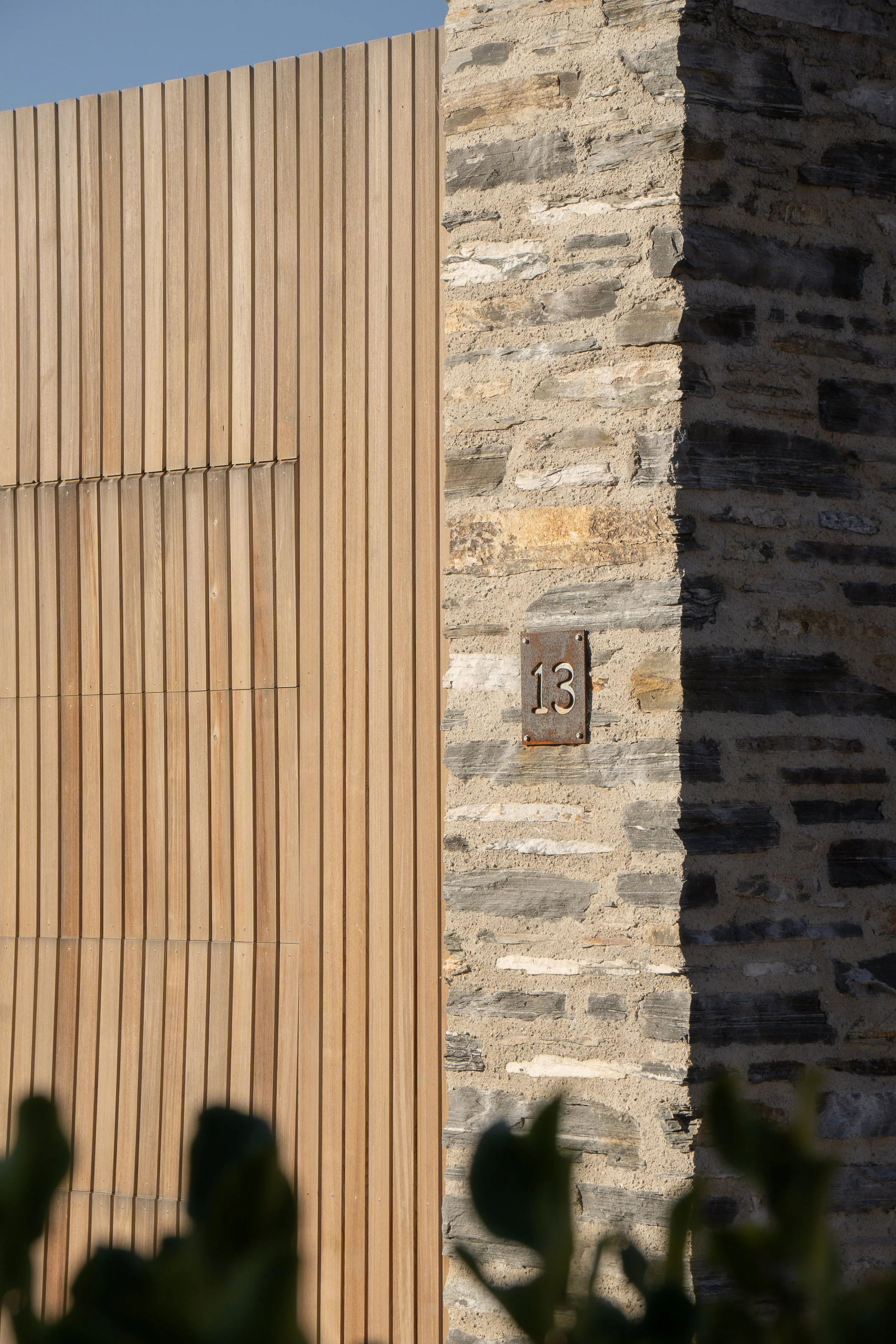Stylish lounge corner with TV, textured armchairs and decor details in a cozy Queenstown Airbnb. View fullsize