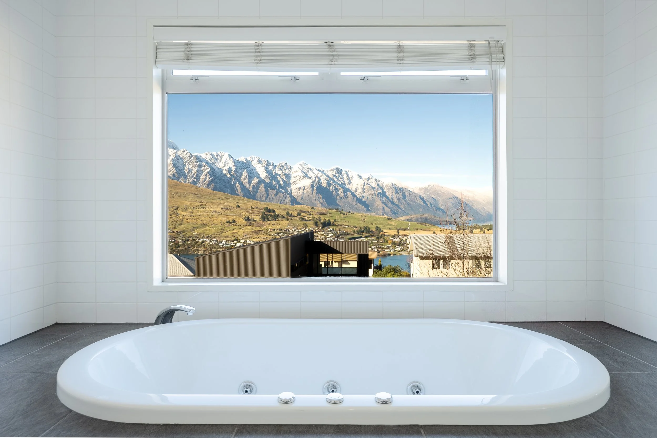Elegant Queenstown bathroom featuring glass shower, soaking tub, and floating vanity — ideal highlight for property sale photography