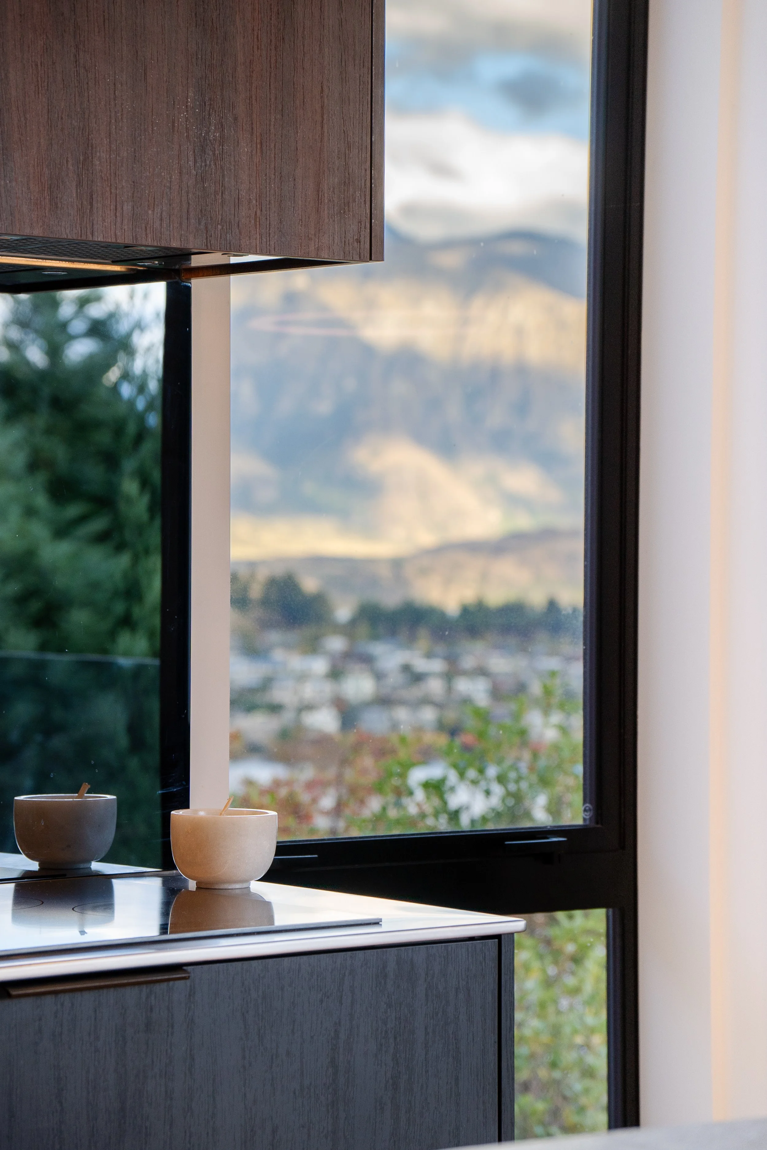 Modern ceramic cooktop with tiled splashback, styled for Queenstown property marketing shoot View fullsize